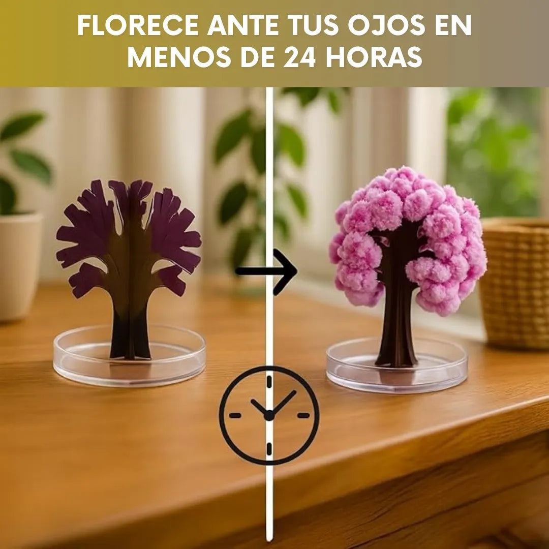 El Árbol Mágico Sakura te regala un momento de calma única. En solo minutos, verás cómo florecen sus pétalos rosados, creando una sensación de paz que reduce el estrés y mejora tu estado de ánimo.