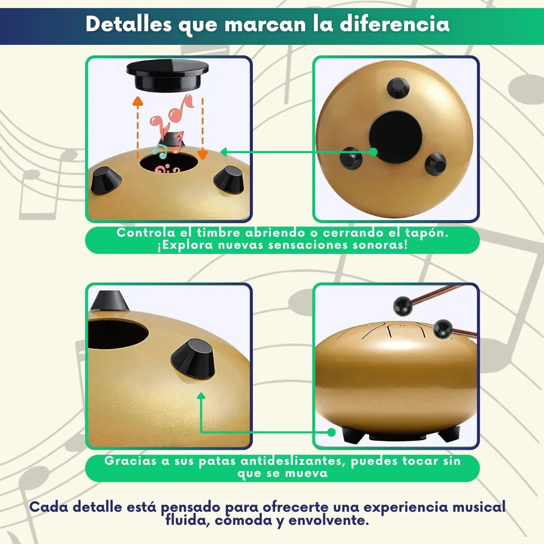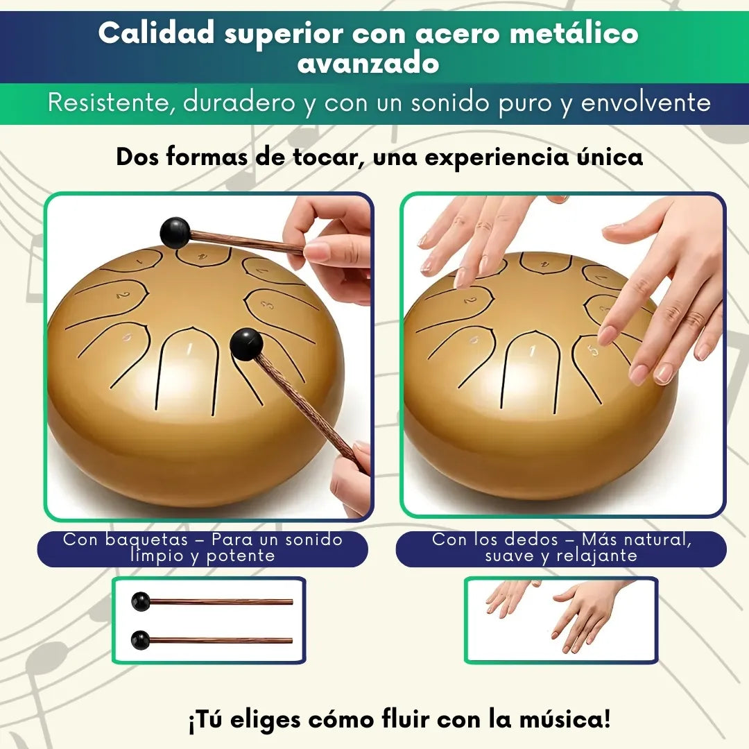El sonido armónico del tambor ayuda a reducir la ansiedad infantil y a mejorar la concentración. Ideal para niños hiperactivos.