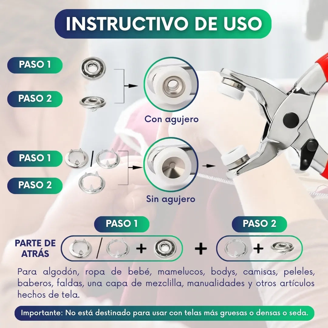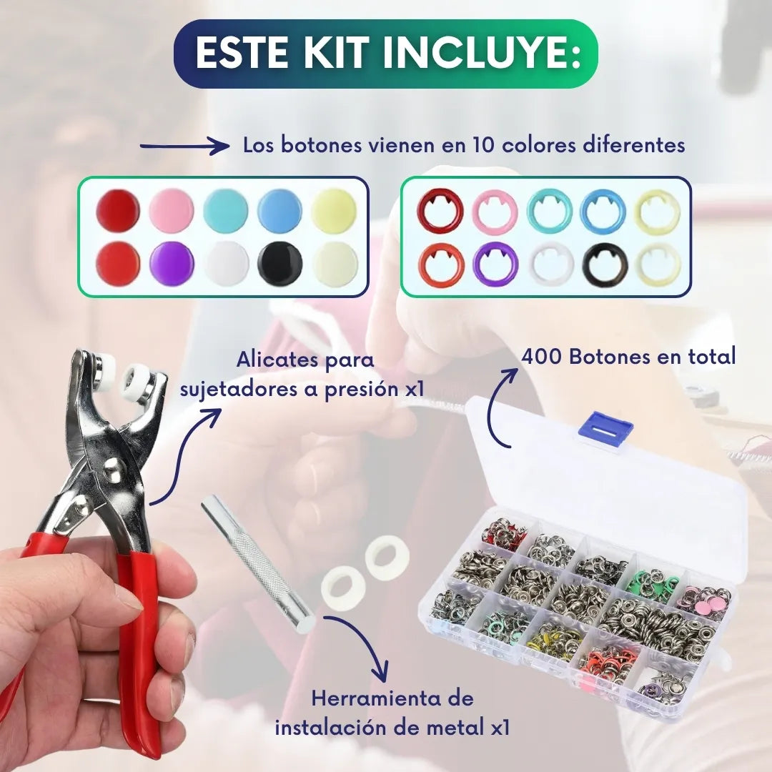 En vez de comprar herramientas y botones por separado, este kit reúne todo por un solo precio. Ya viene listo para usar, sin desperdicios ni compras extra.