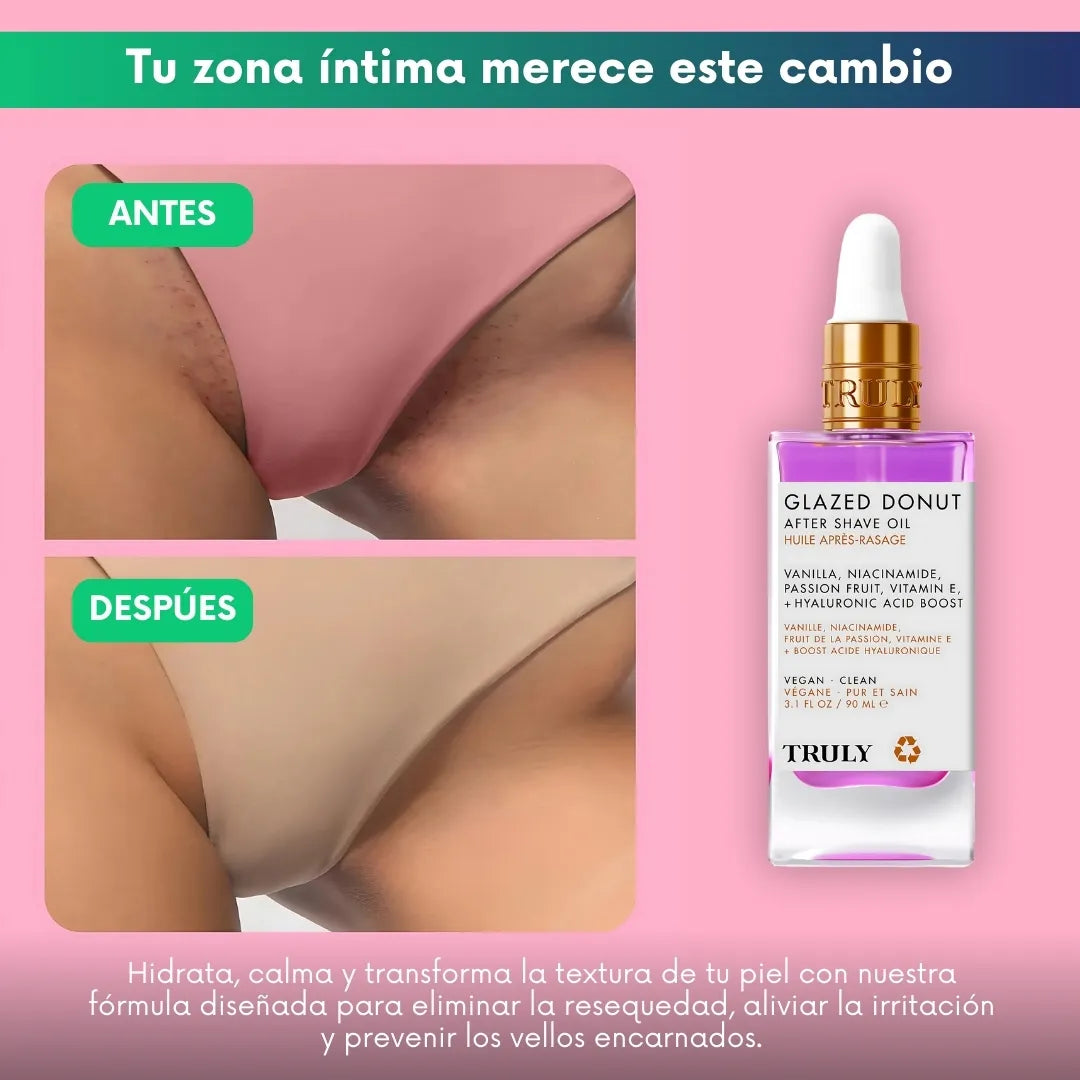Si cuidas tu rostro, ¿por qué no también esa parte tan importante de ti? El Glazed Donut Sérum es suave, seguro y perfecto para devolverle claridad, suavidad y prevenir vellos encarnados sin irritaciones.